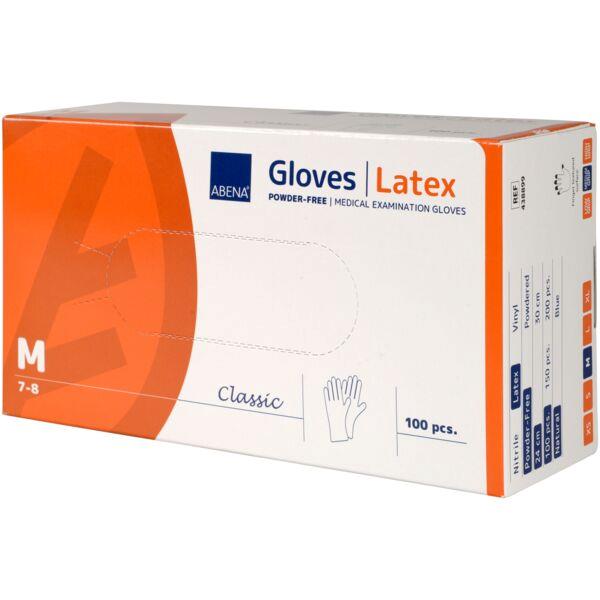 Pregledne rokavice iz lateksa ABENA Classic iz lateksa, brez posipa, M