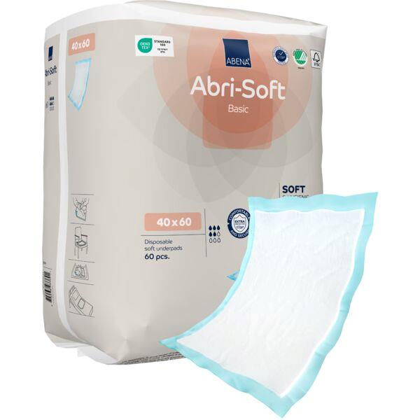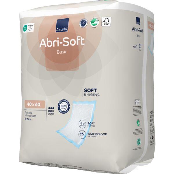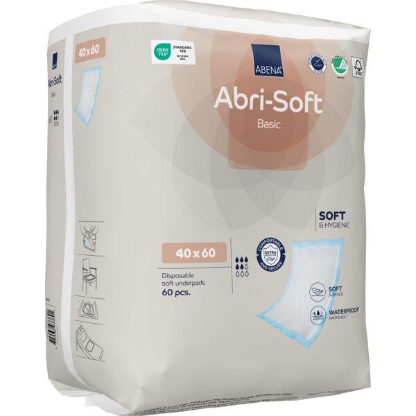 Abri-Soft Basic je posteljna podloga velikosti 40 cm x 60 cm z vpojnostjo 800 ml, narejena iz netkanega materiala ter ima mehko površino, ki je v stiku s kožo. Zadnja plast, ki je vodoodporna (PE), in 4 zatesnjeni robovi preprečujejo iztekanje tekočine.